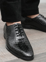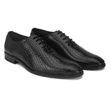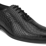 Celeste Black Formal Oxford Shoes with Textured Upper. Handcrafted with High Quality Faux Leather, PU Lining & TPR Sole. Only Grade-A quality materials used. San Frissco shoes are all handcrafted to perfection by expert artisans to offer a truly luxe and affordable experience. Hence, each shoe will have a unique hue and polish, and the color may differ slightly from the picture.