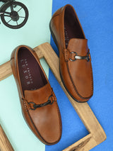 Curtis Tan Driving Loafers with Buckle Detailing. Handcrafted with Italian Leather Upper, Genuine Leather Lining, Inner Soles & TPR Sole. Only Grade-A Leather used. San Frissco Luxor shoes are hand-finished and couture-level creations. Hence, each shoe will have a unique hue and polish, and the color may differ slightly from the picture. |
