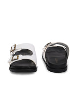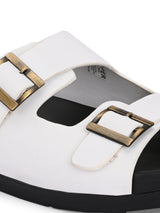 Diggy White Comfort Slippers with Double Straps & Buckle Detailing. Handcrafted with Faux Leather material, Contoured & Cushioned footbed with arch support. Lightweight Patterned Rubber Outsole for all day comfort and shock absorption Only Grade-A quality materials are used. San Frissco shoes are all handcrafted to perfection by expert artists to offer a truly luxe and affordable experience. Hence, each shoe will have a unique hue and polish, and the color may differ slightly from the picture. |
