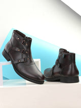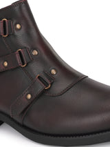 Vagabond Cherry Tri-Strap Ankle Boots. Handcrafted with High Quality Faux Leather Upper, Lining, Inner Soles & TPR OutSole. Only Grade-A Quality materials are used. San Frissco shoes are all handcrafted to perfection by expert artisans to offer a truly luxe and affordable experience. Hence, each shoe will have a unique hue and polish, and the color may differ slightly from the picture. |