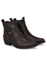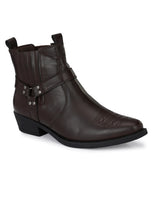 Andi Brown Western Boots. Handcrafted with High Quality Faux Leather Upper, Lining, Inner Soles & TPR OutSole. Only Grade-A Quality materials are used. San Frissco shoes are all handcrafted to perfection by expert artisans to offer a truly luxe and affordable experience. Hence, each shoe will have a unique hue and polish, and the color may differ slightly from the picture.