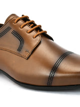 Boston Tan Derby Shoes with Perforated Detailing. Handcrafted with High Quality Faux Leather Upper, Lining, Inner Soles & TPR OutSole. Only Grade-A Quality materials are used. San Frissco shoes are all handcrafted to perfection by expert artisans to offer a truly luxe and affordable experience. Hence, each shoe will have a unique hue and polish, and the color may differ slightly from the picture. |