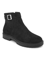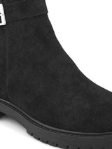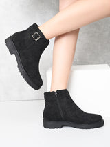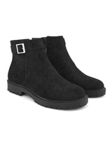 Emery Black Mid-Ankle Women's Boots with Buckle Detailing. Handcrafted with Faux Leather Upper, Lining, Inner Soles & TPR OutSole. Only Grade-A Quality materials are used. San Frissco shoes are all handcrafted to perfection by expert artisans to offer a truly luxe and affordable experience. Hence, each shoe will have a unique hue and polish, and the color may differ slightly from the picture. |