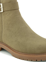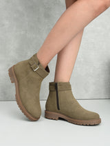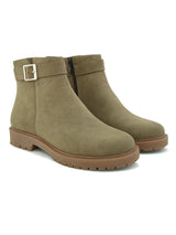Emery Olive Mid-Ankle Women's Boots with Buckle Detailing. Handcrafted with Faux Leather Upper, Lining, Inner Soles & TPR OutSole. Only Grade-A Quality materials are used. San Frissco shoes are all handcrafted to perfection by expert artisans to offer a truly luxe and affordable experience. Hence, each shoe will have a unique hue and polish, and the color may differ slightly from the picture. |