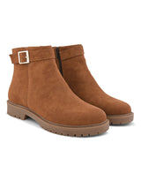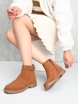 Emery Tan Mid-Ankle Women's Boots with Buckle Detailing. Handcrafted with Faux Leather Upper, Lining, Inner Soles & TPR OutSole. Only Grade-A Quality materials are used. San Frissco shoes are all handcrafted to perfection by expert artisans to offer a truly luxe and affordable experience. Hence, each shoe will have a unique hue and polish, and the color may differ slightly from the picture. |