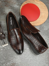 Escaro Brown Slip-Ons with Textured Upper. Handcrafted with High Quality Faux Leather Upper & Lining, TPR Sole. Only Grade-A quality materials used. San Frissco shoes are all handcrafted to perfection by expert artisans to offer a truly luxe and affordable experience. Hence, each shoe will have a unique hue and polish, and the color may differ slightly from the picture.