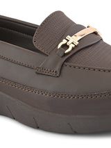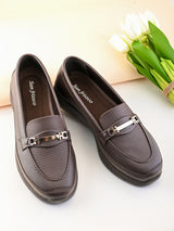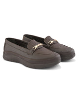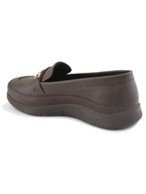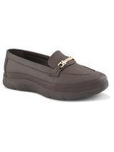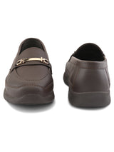 | Fathom Brown Women Ultra-light Everyday Loafers with Buckle Detailing & Cushioned footbed. Handcrafted with High Quality Faux Leather Upper, Lining, Inner Soles and Textured and patterned EVA outsole. Only Grade-A Quality materials are used. San Frissco shoes are all handcrafted to perfection by expert artisans to offer a truly luxe and affordable experience. Hence, each shoe will have a unique hue and polish, and the color may differ slightly from the picture. |