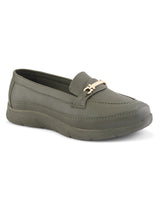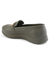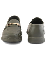 Fathom Olive Women Ultra-light Everyday Loafers with Buckle Detailing & Cushioned footbed. Handcrafted with High Quality Faux Leather Upper, Lining, Inner Soles and Textured and patterned EVA outsole. Only Grade-A Quality materials are used. San Frissco shoes are all handcrafted to perfection by expert artisans to offer a truly luxe and affordable experience. Hence, each shoe will have a unique hue and polish, and the color may differ slightly from the picture.