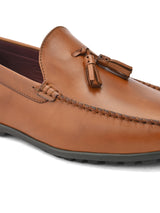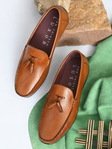 Firenze Solid Tan Loafers with Tassels. Handcrafted with Italian Leather Upper, Genuine Leather Lining, Inner Soles & TPR Sole. Only Grade-A Leather used. San Frissco Luxor shoes are hand-finished and couture-level creations. Hence, each shoe will have a unique hue and polish, and the color may differ slightly from the picture. |