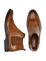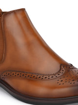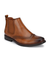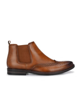 Hague Tan Chelsea Ankle Boots with Broguing. Handcrafted with High Quality Faux Leather Upper & Lining, TPR Sole. Only Grade-A quality materials used. San Frissco shoes are all handcrafted to perfection by expert artisans to offer a truly luxe and affordable experience. Hence, each shoe will have a unique hue and polish, and the color may differ slightly from the picture.