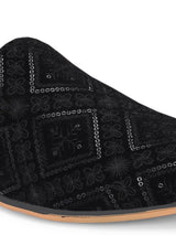 | Juniper Black Textured Slip-On Mojaris with Sequence Accent. Handcrafted with High Quality Handmade Upper, PU Lining & TPR Sole. Only Grade-A quality materials used. San Frissco shoes are all handcrafted to perfection by expert artisans to offer a truly luxe and affordable experience. Hence, each shoe will have a unique hue and polish, and the color may differ slightly from the picture. |