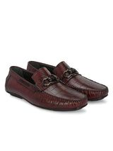 Libson Cherry Textured Driving Loafers with Buckle Detailing. Handcrafted with Italian Leather Upper and Lining , PU Inner Soles & TPR Sole. Only Grade-A Leather used. San Frissco Luxor shoes are hand-finished and couture-level creations. Hence, each shoe will have a unique hue and polish, and the color may differ slightly from the picture. |