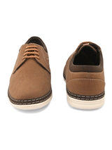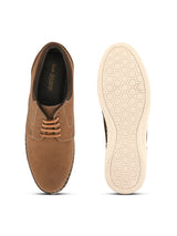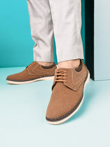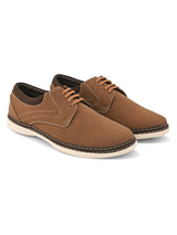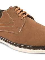 Lloyd Tan Derby Shoes with Contrasting White Stitch Detailing. Handcrafted with Faux Suede Upper, Faux Leather Lining, Inner Soles & TPR OutSole. Only Grade-A Quality materials are used. San Frissco shoes are all handcrafted to perfection by expert artisans to offer a truly luxe and affordable experience. Hence, each shoe will have a unique hue and polish, and the color may differ slightly from the picture. |
