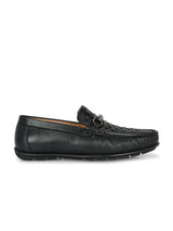 | Magnus Black Driving Loafers with a Textured Upper and Buckle Detailing. Handcrafted with Italian Leather Upper, PU Lining , Inner Soles & Rubber Sole. Only Grade-A Leather used.  San Frissco Luxor shoes are hand-finished and couture-level creations. Hence, each shoe will have a unique hue and polish, and the color may differ slightly from the picture. |