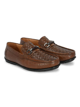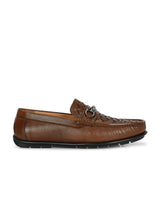 | Magnus Tan Driving Loafers with a Textured Upper and Buckle Detailing. Handcrafted with Italian Leather Upper, PU Lining , Inner Soles & Rubber Sole. Only Grade-A Leather used.  San Frissco Luxor shoes are hand-finished and couture-level creations. Hence, each shoe will have a unique hue and polish, and the color may differ slightly from the picture. |