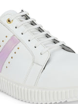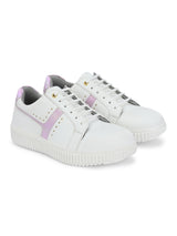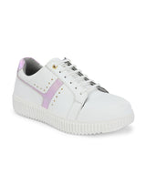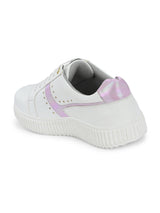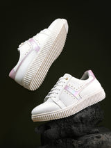 Megan White Comfort Sneakers with Pink Holographic Panel Detailing and a Cushioned footbed. Handcrafted with High Quality Faux Leather Upper, Lining, Inner Soles & Textured and patterned TPR outsole. Only Grade-A Quality materials are used. San Frissco shoes are all handcrafted to perfection by expert artisans to offer a truly luxe and affordable experience. Hence, each shoe will have a unique hue and polish, and the color may differ slightly from the picture.