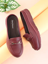| Miorah Cherry Women Ultra-light Comfort Mules with Buckle Detailing & Cushioned footbed. Handcrafted with High Quality Faux Leather Upper, Lining, Inner Soles and Textured and patterned EVA outsole. Only Grade-A Quality materials are used. San Frissco shoes are all handcrafted to perfection by expert artisans to offer a truly luxe and affordable experience. Hence, each shoe will have a unique hue and polish, and the color may differ slightly from the picture. |