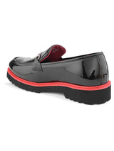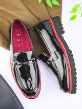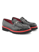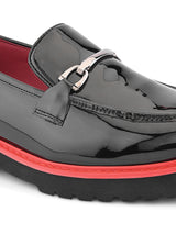 Portobello Black Slip-Ons with a Patent Finishing and Buckle Detailing. Handcrafted with Italian Leather Upper, Genuine Leather Lining, Inner Soles & Rubber OutSole with a Contrasting red accent. Only Grade-A Quality materials are used. San Frissco shoes are all handcrafted to perfection by expert artisans to offer a truly luxe and affordable experience. Hence, each shoe will have a unique hue and polish, and the color may differ slightly from the picture. |