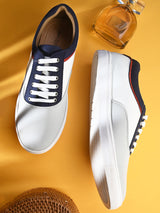 Pulse White Colorblock Sneakers with Navy Blue and Grey Panels. Handcrafted with High Quality Faux Leather Upper, Lining, Inner Soles & TPR OutSole. Only Grade-A Quality materials are used. San Frissco shoes are all handcrafted to perfection by expert artisans to offer a truly luxe and affordable experience. Hence, each shoe will have a unique hue and polish, and the color may differ slightly from the picture. |