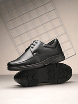 | Quad Black Solid Chukka Style Derby Shoes . Handcrafted with High Quality Faux Leather, PU Lining & PU Sole. Only Grade-A quality materials used. San Frissco shoes are all handcrafted to perfection by expert artisans to offer a truly luxe and affordable experience. Hence, each shoe will have a unique hue and polish, and the color may differ slightly from the picture. |