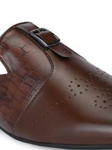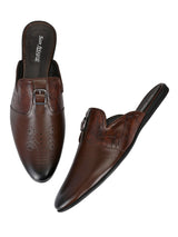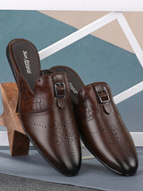 Ramon Brown Buckle Mules with Perforated Textured Upper. Handcrafted with Faux Leather Upper, Lining, Inner Soles & TPR OutSole. Only Grade-A Quality materials are used. San Frissco shoes are all handcrafted to perfection by expert artisans to offer a truly luxe and affordable experience. Hence, each shoe will have a unique hue and polish, and the color may differ slightly from the picture.