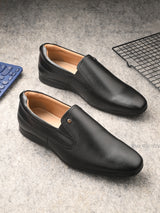 | Reine Black Solid Slip-Ons. Handcrafted with High Quality Faux Leather, PU Lining & TPR Sole. Only Grade-A quality materials used. San Frissco shoes are all handcrafted to perfection by expert artisans to offer a truly luxe and affordable experience. Hence, each shoe will have a unique hue and polish, and the color may differ slightly from the picture. |