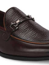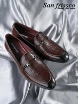 Step into elegance with San Frissco handmade formal loafers, crafted for men who value style and comfort. These loafers feature a premium synthetic upper with a textured finish and a classy metal buckle detail, giving a refined formal look. The TPR sole provides excellent grip, flexibility, and durability, making them ideal for long office hours and formal occasions. The slip-on design ensures ease of wear while maintaining a sophisticated appearance.