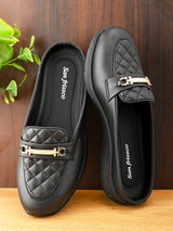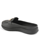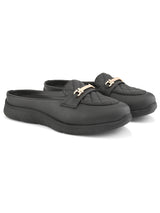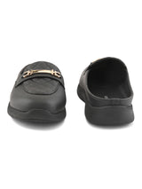 | Scone Black Women Ultra-light Comfort Mules with Buckle Detailing & Cushioned footbed. Handcrafted with High Quality Faux Leather Upper, Lining, Inner Soles and Textured and patterned EVA outsole. Only Grade-A Quality materials are used. San Frissco shoes are all handcrafted to perfection by expert artisans to offer a truly luxe and affordable experience. Hence, each shoe will have a unique hue and polish, and the color may differ slightly from the picture. |