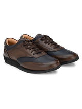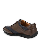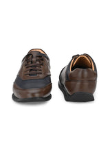 Sway Brown Sneakers with Blue Panels Handcrafted with High Quality Faux LeatherPU Lining & TPR Sole Only Grade-A qualty materials usedSan Frissco shoes are all handcrafted to perfection by expert artisants to offer a truely luxe and affordable exerience. Hence, each shoe will have a unique hue and polish, and the color may differ slightly from the picture.