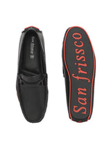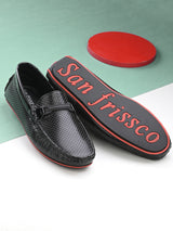 | Swedish Black Driving Loafers with a Textured Upper & Buckle Detailing. Handcrafted with High Quality Faux Leather Upper, Lining, Inner Soles & TPR OutSole. Only Grade-A Quality materials are used. San Frissco shoes are all handcrafted to perfection by ex |