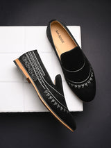 Tribal Black Embroidered Slip-Ons