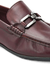 | Venetto Cherry Driving Loafers with Buckle Detailing. Handcrafted with Italian Leather Upper, Genuine Leather Lining, Inner Soles & TPR Sole. Only Grade-A Leather used. San Frissco Luxor shoes are hand-finished and couture-level creations. Hence, each shoe will have a unique hue and polish, and the color may differ slightly from the picture. |