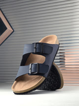 Byron Blue Comfort Slippers with Double Straps & Buckle Detailing. Handcrafted with Faux Leather material, Contoured & Cushioned footbed with arch support. Lightweight Patterned Rubber Outsole for all day comfort and shock absorption Only Grade-A quality materials are used. San Frissco shoes are all handcrafted to perfection by expert artisans to offer a truly luxe and affordable experience. Hence, each shoe will have a unique hue and polish, and the color may differ slightly from the picture.  |
