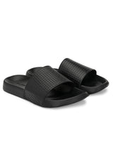 Clarion Black Comfort sliders Handcrafted with Italian Leather Embossed Upper, Cushioned footbed with arch support Light weight Flexible EVA sole for all day comfort and shock absorption. Only Grade-A quality materials are used.