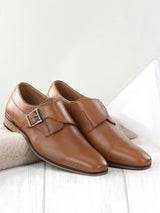 Fora Tan Single Monk Strap Shoes. Handcrafted with Italian Leather Upper, Genuine Leather Lining & TPR Out Sole. Only Grade-A Leather used. San Frissco Luxor shoes are hand-finished and couture-level creations. Hence, each shoe will have a unique hue and polish, and the color may differ slightly from the picture.