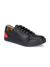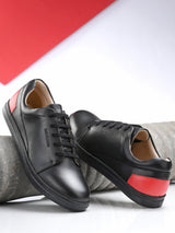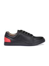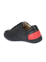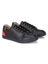 Peyton Black Casual Sneakers With Contrasting Back Panel. Handcrafted with High Quality Faux Leather, Lining & TPR Sole. Only Grade-A quality materials used. San Frissco shoes are all handcrafted to perfection by expert artisans to offer a truly luxe and affordable experience. Hence, each shoe will have a unique hue and polish, and the color may differ slightly from the picture.