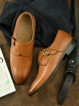 Foreign Tan Monk Strap Formal Shoes. Handcrafted with Italian Leather Upper Genuine Leather Lining & Inner Soles, T-Unit OutSole. Only Grade-A Leather is used. San Frissco Luxor shoes are hand-finished and couture-level creations. Hence, each shoe will have a unique hue and polish, and the color may differ slightly from the picture.
