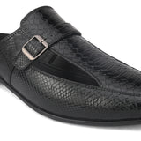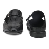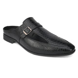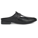 Palladio Black Sandal Mules with our signature buckle. Handcrafted with Textured Upper, Faux Leather Lining, Inner Soles & OutSole. Only Grade-A Quality materials are used. San Frissco shoes are all handcrafted to perfection by expert artisans to offer a truly luxe and affordable experience. Hence, each shoe will have a unique hue and polish, and the color may differ slightly from the picture.