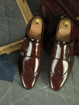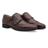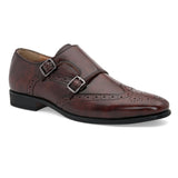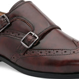 Ross Cherry Textured Double Monk Shoes. Handcrafted with High Quality Faux Leather, PU Lining & TPR Sole. Only Grade-A quality materials used. San Frissco shoes are all handcrafted to perfection by expert artisans to offer a truly luxe and affordable experience. Hence, each shoe will have a unique hue and polish, and the color may differ slightly from the picture.