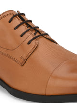 Royale Tan Oxford Shoes with Toecap Detailing. Handcrafted with Italian Leather Textured Upper, Faux Leather Lining & TPR Out Sole. Only Grade-A Leather used. San Frissco Luxor shoes are hand-finished and couture-level creations. Hence, each shoe will have a unique hue and polish, and the color may differ slightly from the picture. |