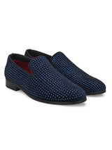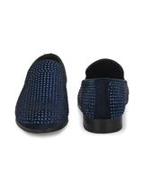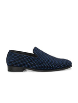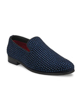 StarGaze Embellished Slip-ons in Blue are Handcrafted with Italian Leather Upper Genuine Leather Lining , Inner Soles & TPR Sole. Only Grade-A Leather used. Shipped with luxury shoe bag, shoe horn and a shoe shinner. San Frissco Luxor shoes are hand-finished and couture-level creations. Hence, each shoe will have a unique hue and polish, and the color may differ slightly from the picture.